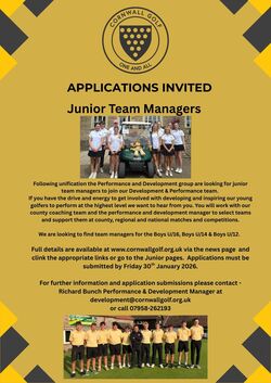 Three Junior Managers positions in Boys U16, Boys U14 and Boys U12 group categories.