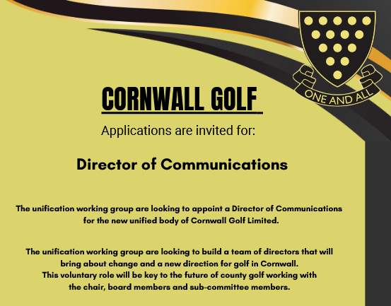 After the successful appointments of six Directors so far, the unification working group are now seeking a Directors of Communications who will sit on the newly formed Cornwall Golf Ltd board of Directors.